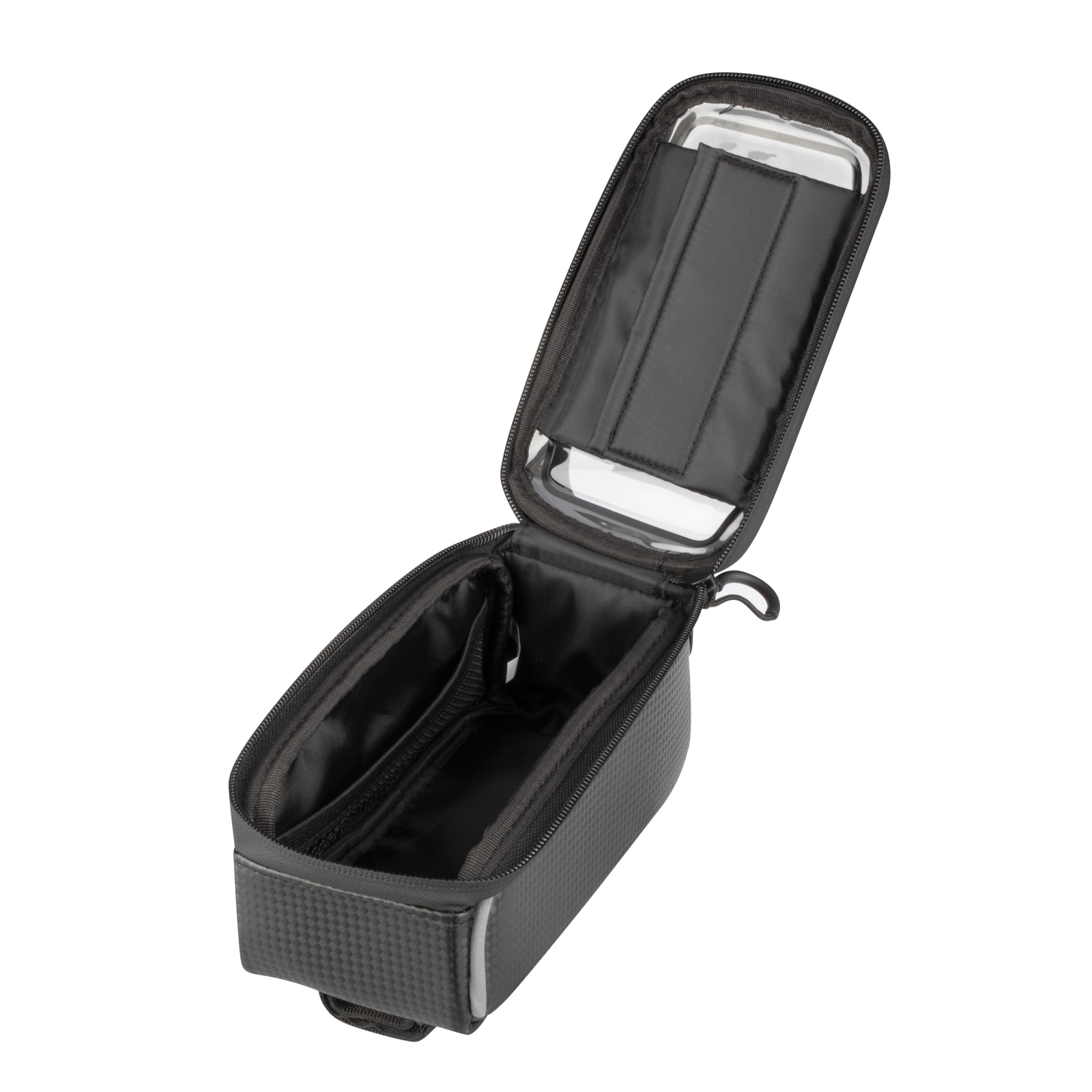 Geanta de cadru FORCE waterproof protejează telefonul și obiectele personale împotriva umezelii, prafului și murdăriei. Fabricată din material rezistent și ranforsat, își păstrează forma și este ușor de fixat cu curele Velcro. Telefonul poate fi folosit direct prin folia transparentă și sensibilă la atingere, iar accesul la interior este rapid datorită fermoarului pe tot perimetrul.