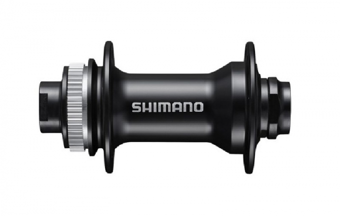 Butuc fata Shimano HB-MT400, Center Lock, Thru-axle de 15mm, fara ax, OLD 100mm, fara lock-ring, Negru, 32H