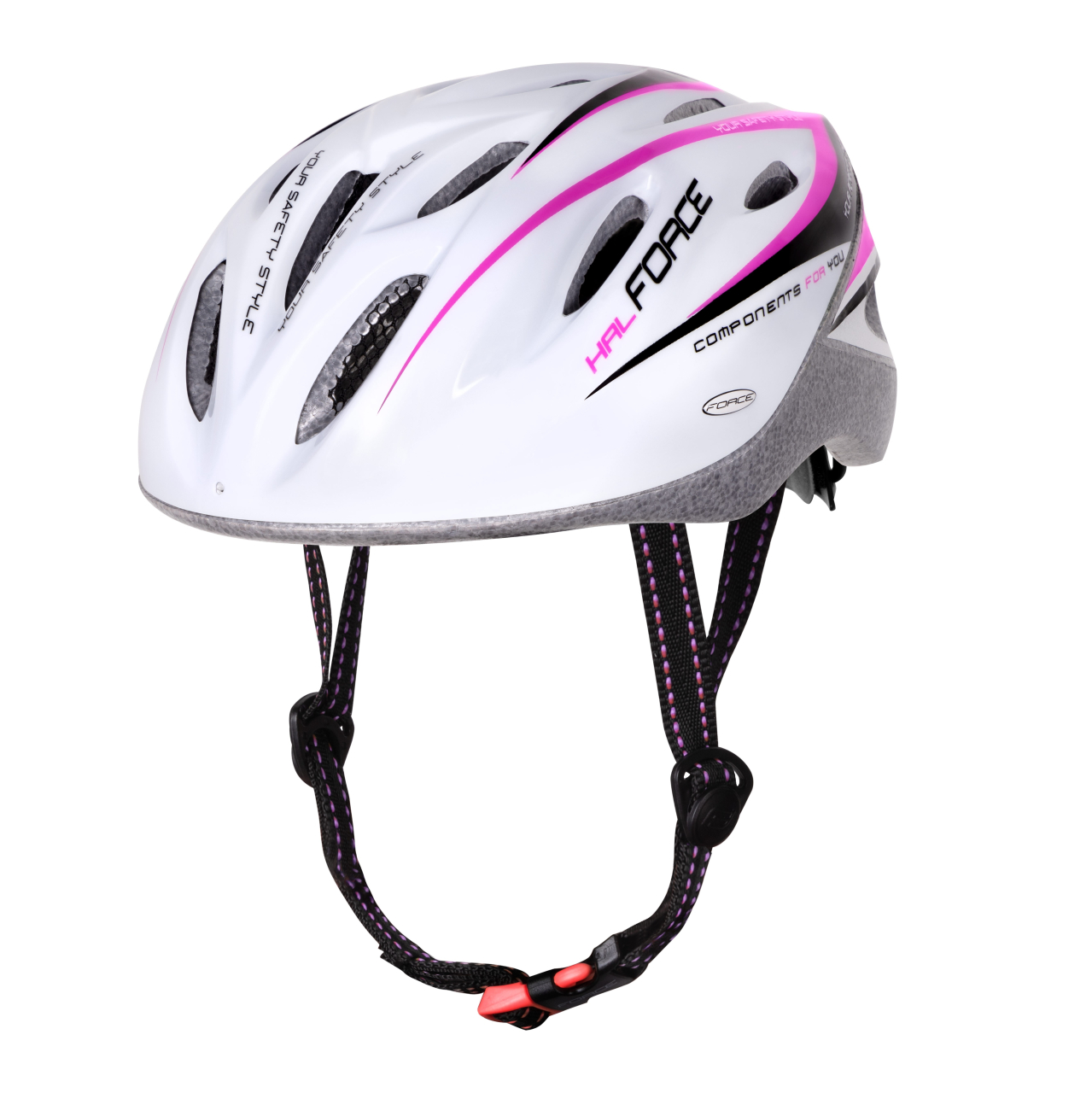Casca economică HAL asigură siguranță și ventilație datorită celor 19 orificii de aerisire. Confortul și protecția sunt garantate de buretele de sub bărbie și de posibilitatea ajustării mărimii prin rotiță. Viziera detașabilă cu sistem de prindere snap oferă protecție solară.