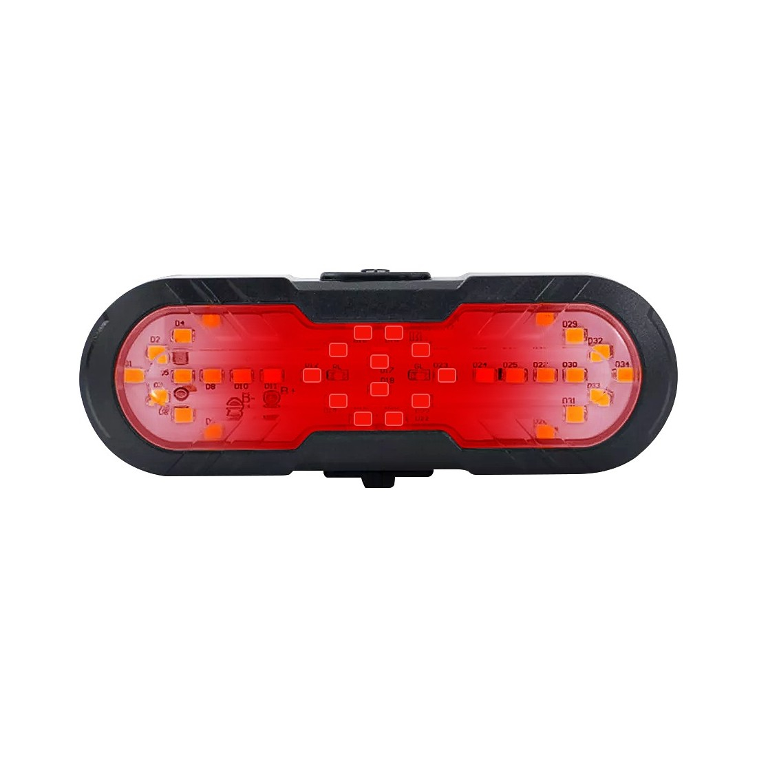 Lampa spate pentru bicicletă include funcția de semnalizare direcțională, permițând emiterea de lumini de semnalizare stânga/dreapta. Acest lucru avertizează eficient vehiculele și pietonii despre direcția în care urmează să virezi, sporind semnificativ siguranța în trafic.