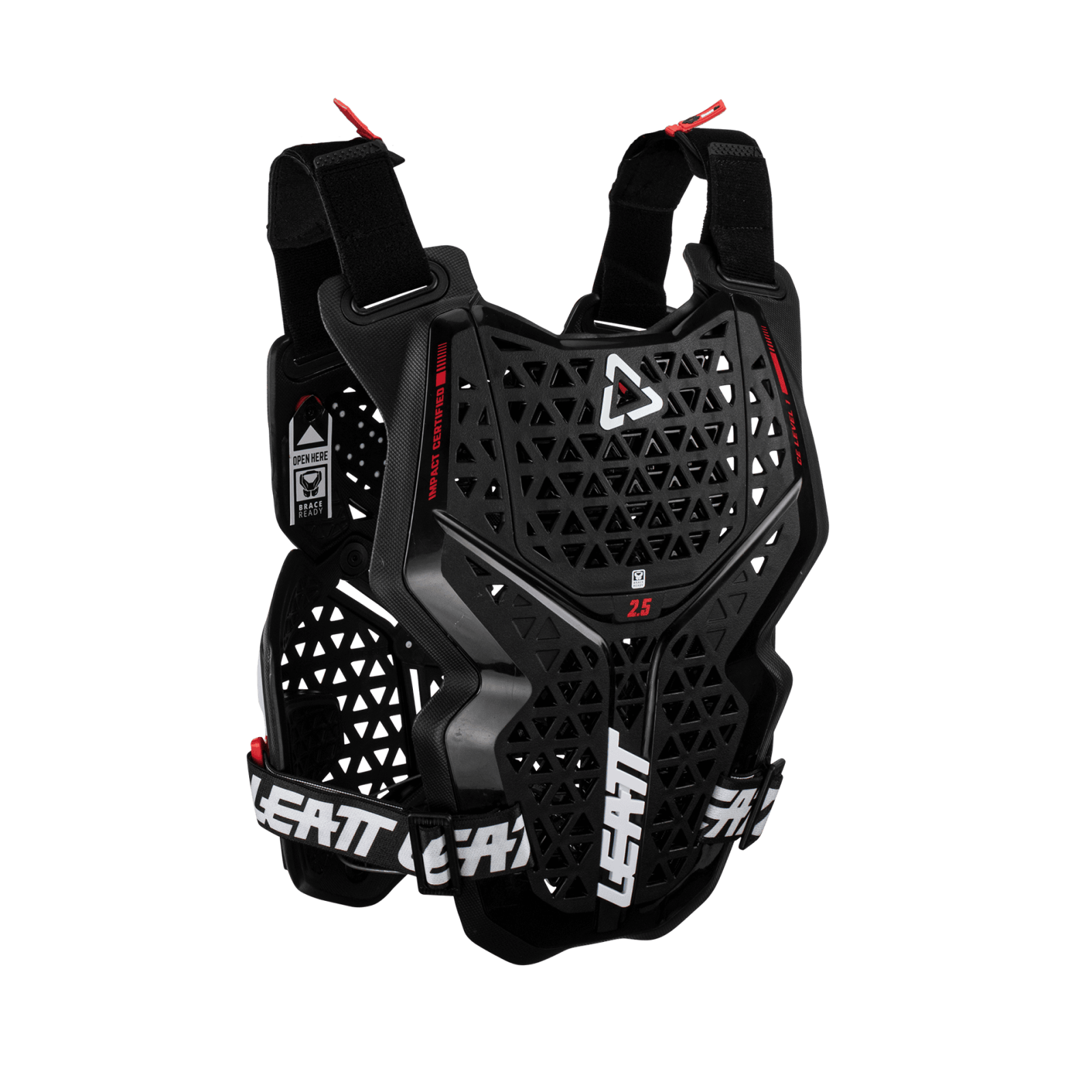 Sistemul BraceOn™ permite integrarea perfectă cu neck brace-urile Leatt, fără ridicarea sau presiunea echipamentului — o combinație ideală pentru riderii care pun accent pe protecția completă.