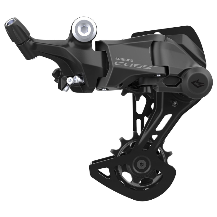 Schimbătorul spate Shimano CUES RD‑U4000 este proiectat pentru transmisii 1×9 viteze și oferă schimbări stabile și fiabile pe trasee, pe drumuri de țară, poteci de teren ușor și în oraș. Designul cu profil redus și tehnologia de stabilizare a lanțului permit o funcționare silențioasă și protecție crescută împotriva lovirii de obstacole.