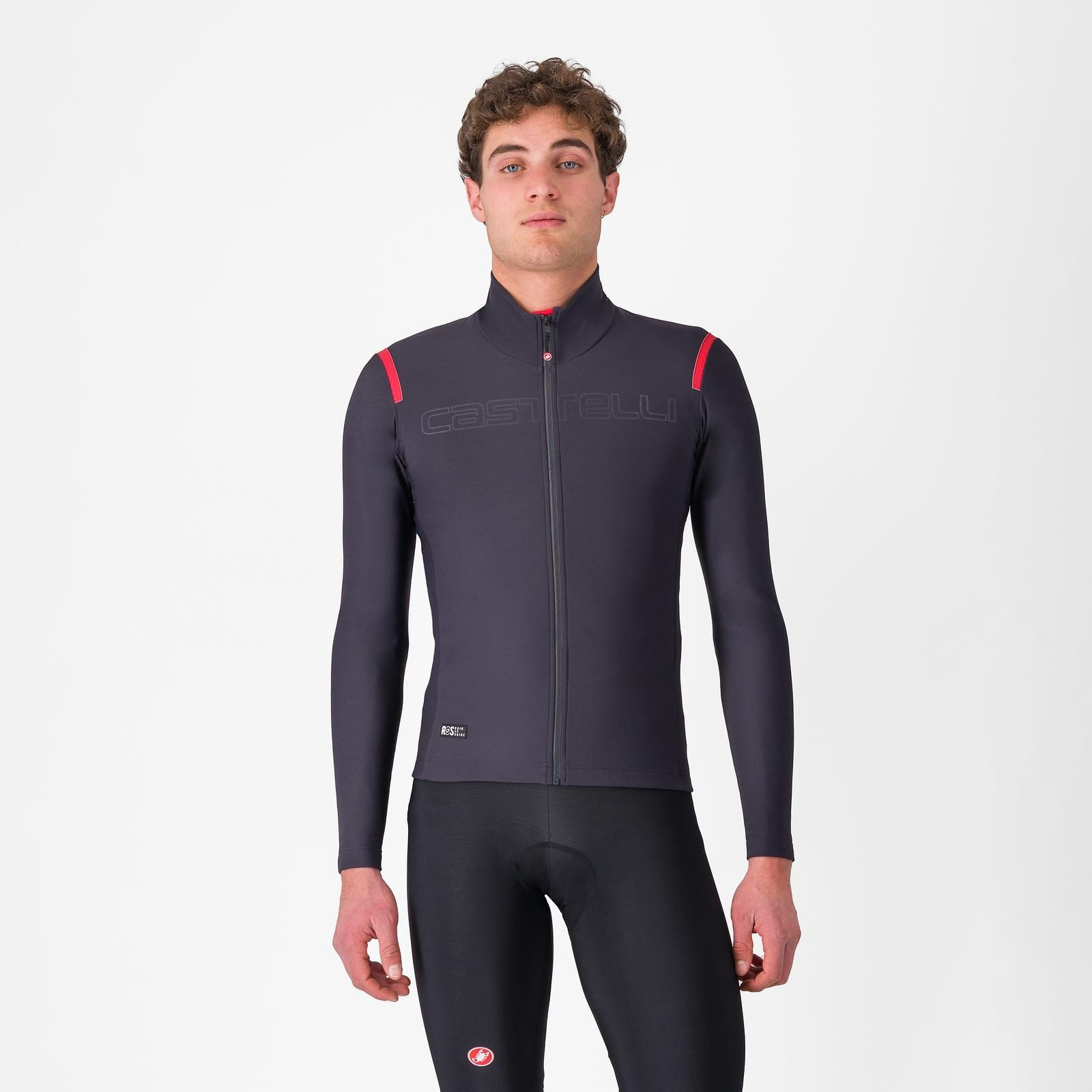 Urmeaza tratamentul proprietar Castelli de repelenta pentru apa. In zilele uscate acesta nu te va deranja deloc, dar cand vei fi prins de o ploaie usoara sau ajungi pe o portiune de drum umed, vei ramane uscat.