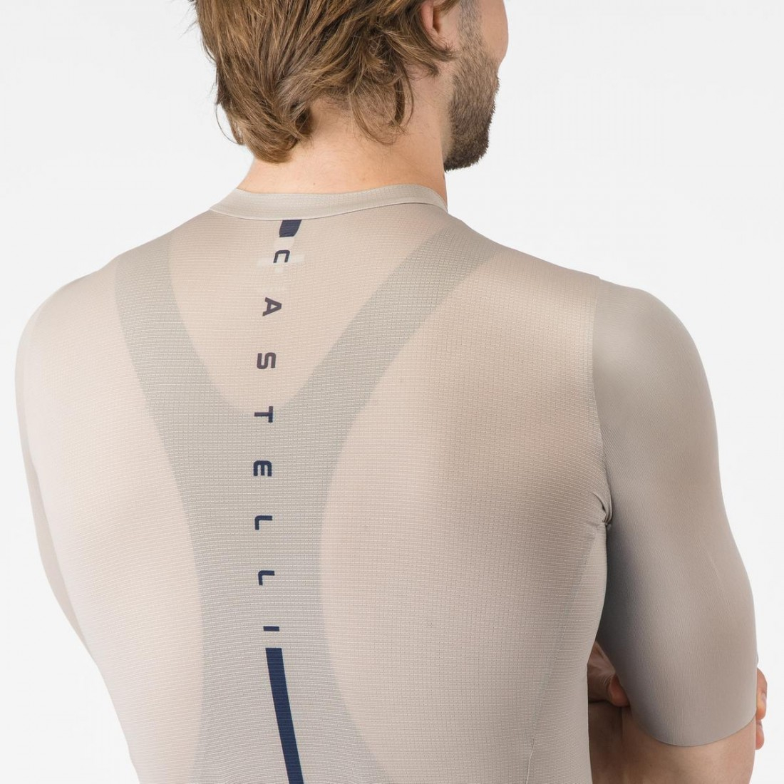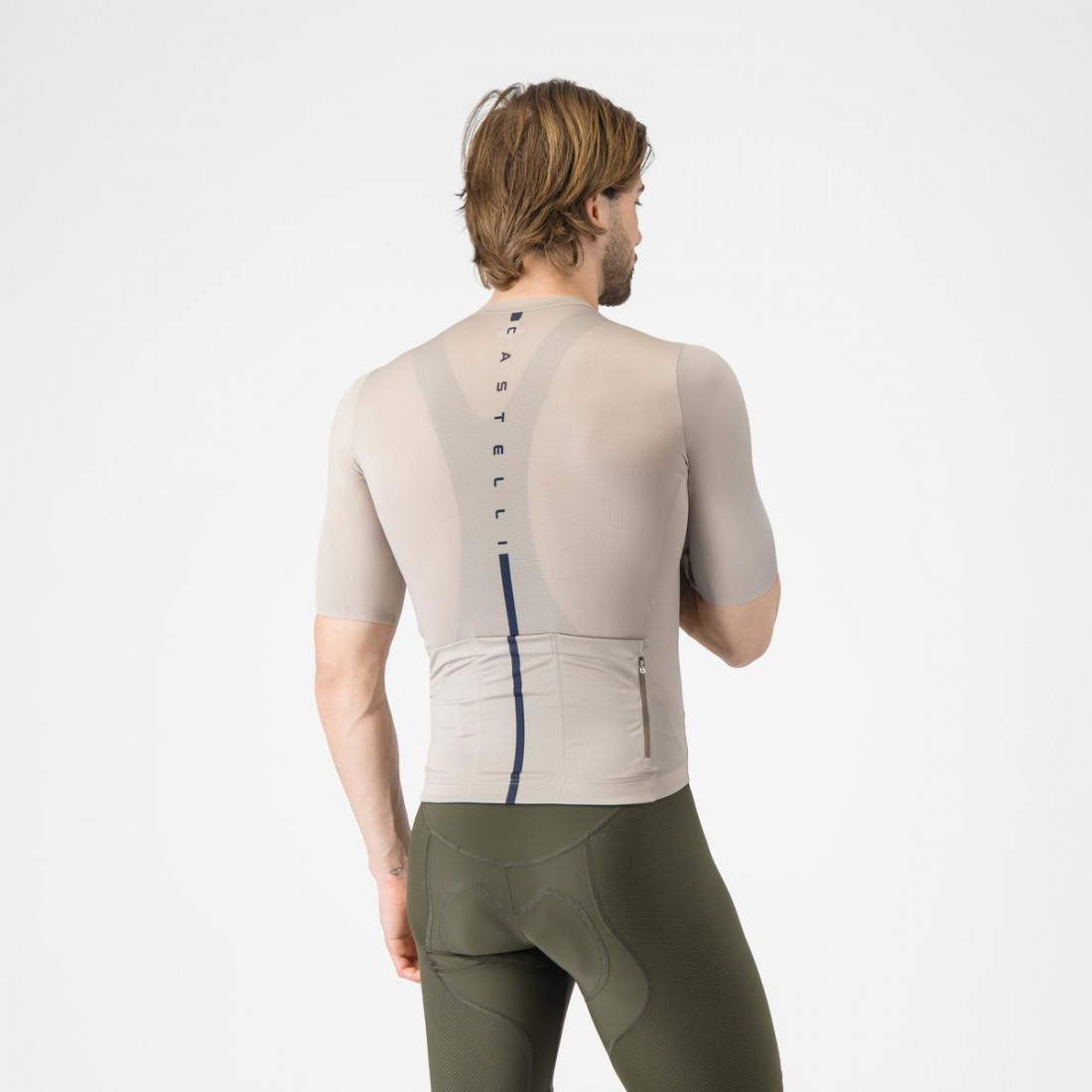 Castelli Tricou cu maneca scurta Castelli Drittone Logo, pentru barbati, bej/albastru belgian M